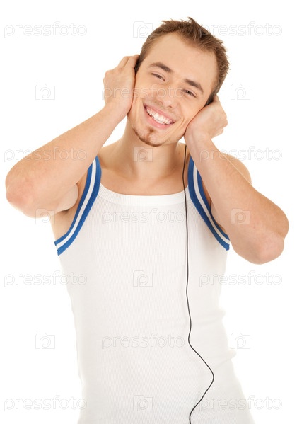 Портрет улыбающегося молодого человека в наушниках