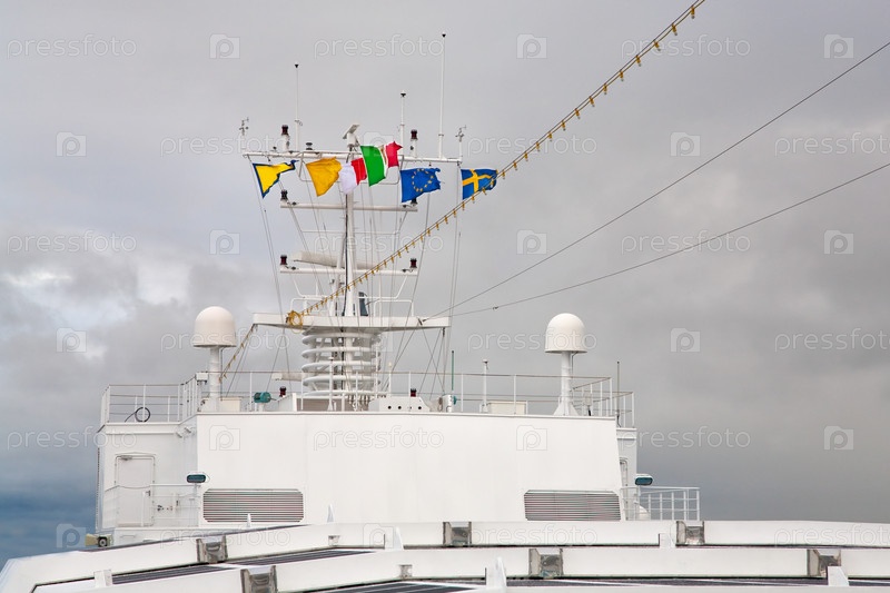 Флаги европейских стран на антенне круизного лайнера