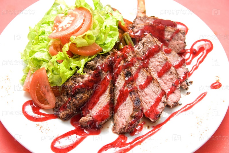 Говядина с клюквенным соусом и овощами