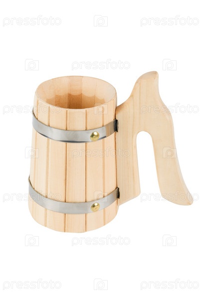Деревянная кружка на белом фоне
