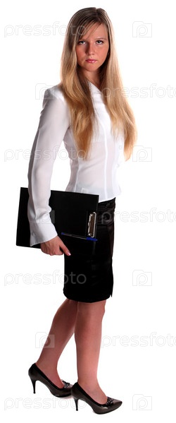 Портрет красивой молодой бизнес-леди на белом фоне