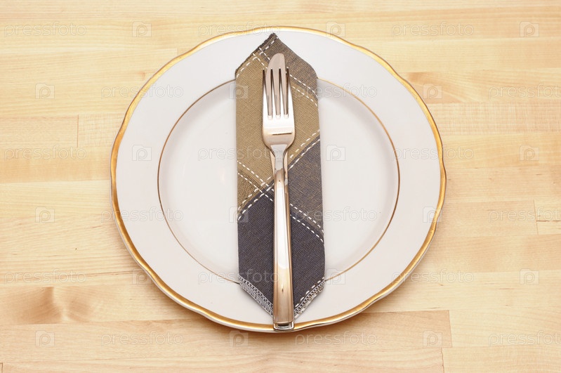 Нож, вилка и тарелка на столе
