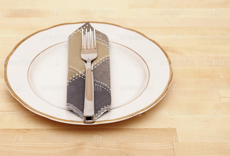 Нож, вилка и тарелка на столе