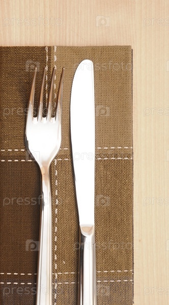 Нож и вилка на салфетке