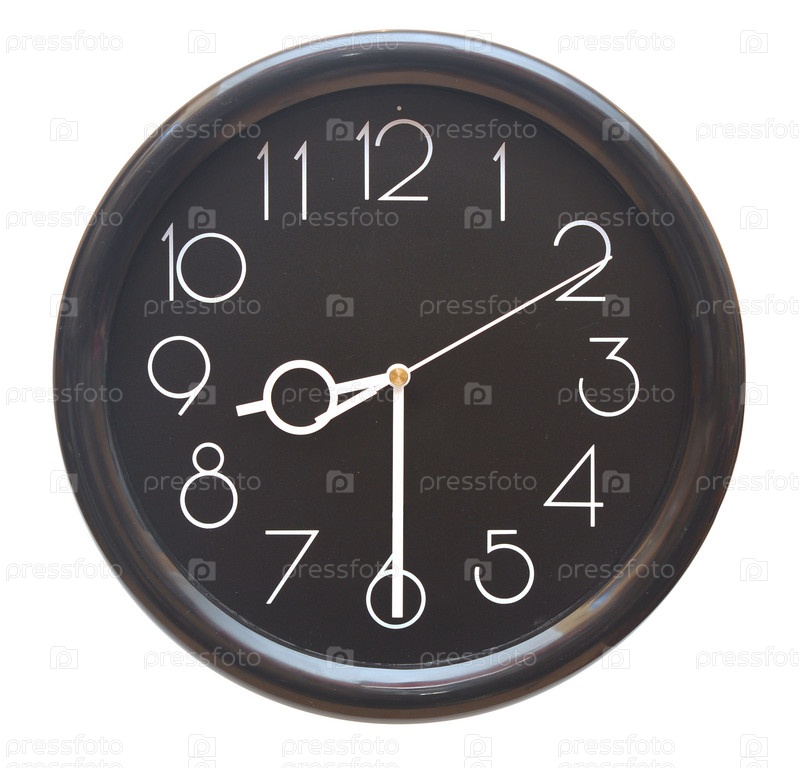 Круглые настенные часы на белом фоне