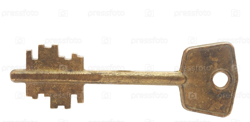Старый ключ на белом фоне