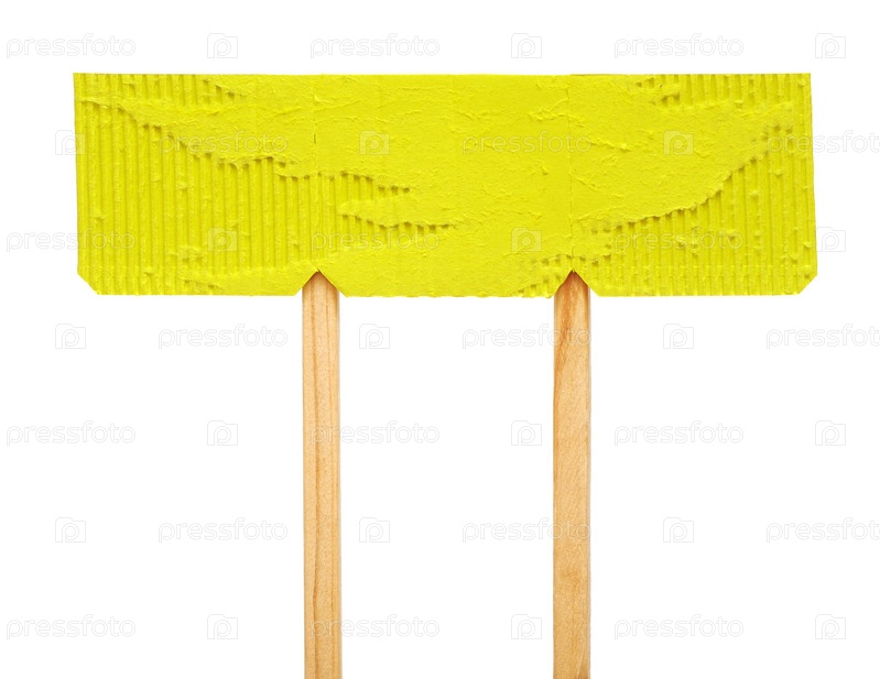 Пустая табличка из желтого картона на белом фоне