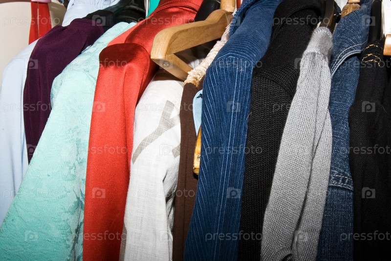 Одежда на плечиках в шкафу