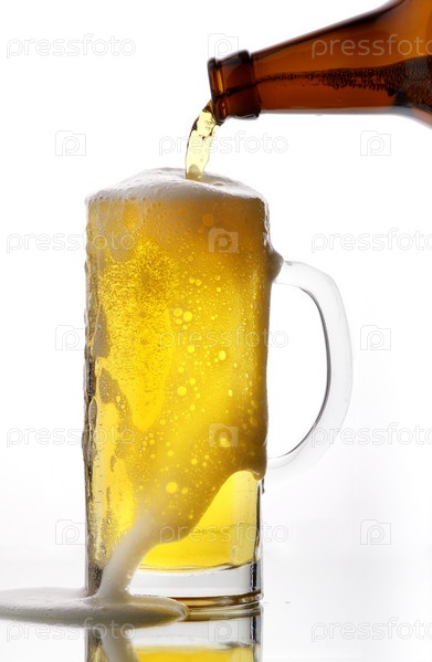 Пиво, наливаемое в кружку из бутылки