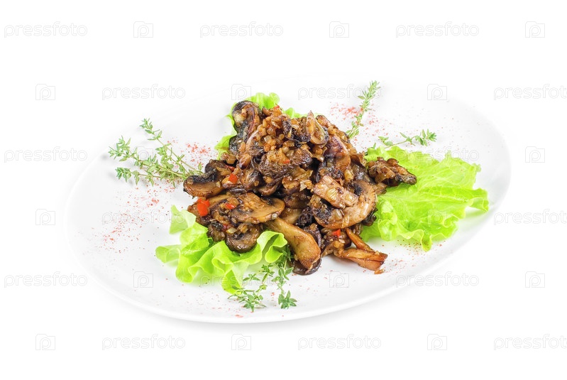 Жареные грибы, изолированы на белом фоне