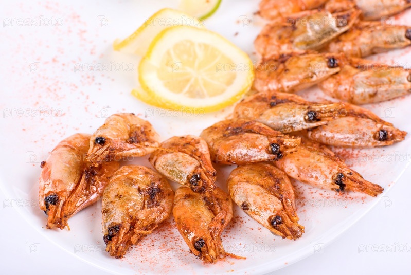 Жареные креветки с лимоном