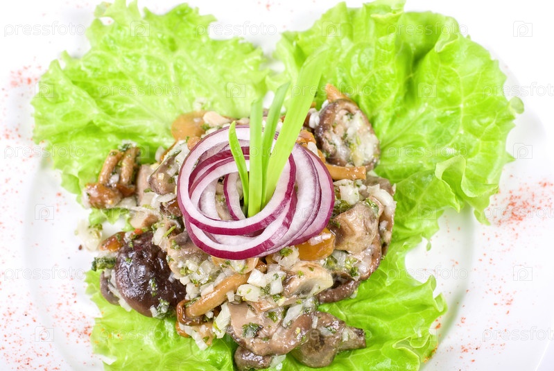 Салат с грибами, изолирован на белом фоне