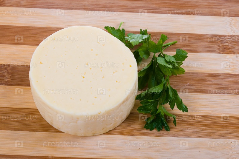 Сыр и веточка петрушки на столе