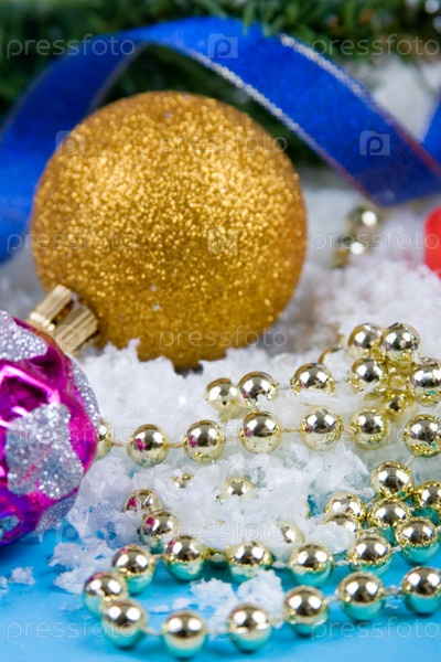 Елочные украшения на искусственном снегу
