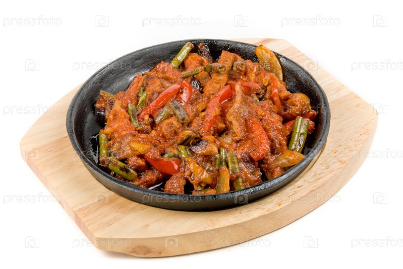Жареное мясо с овощами крупным планом