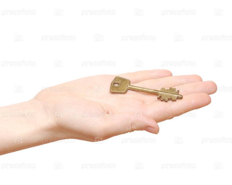 Ключ в руке на белом фоне