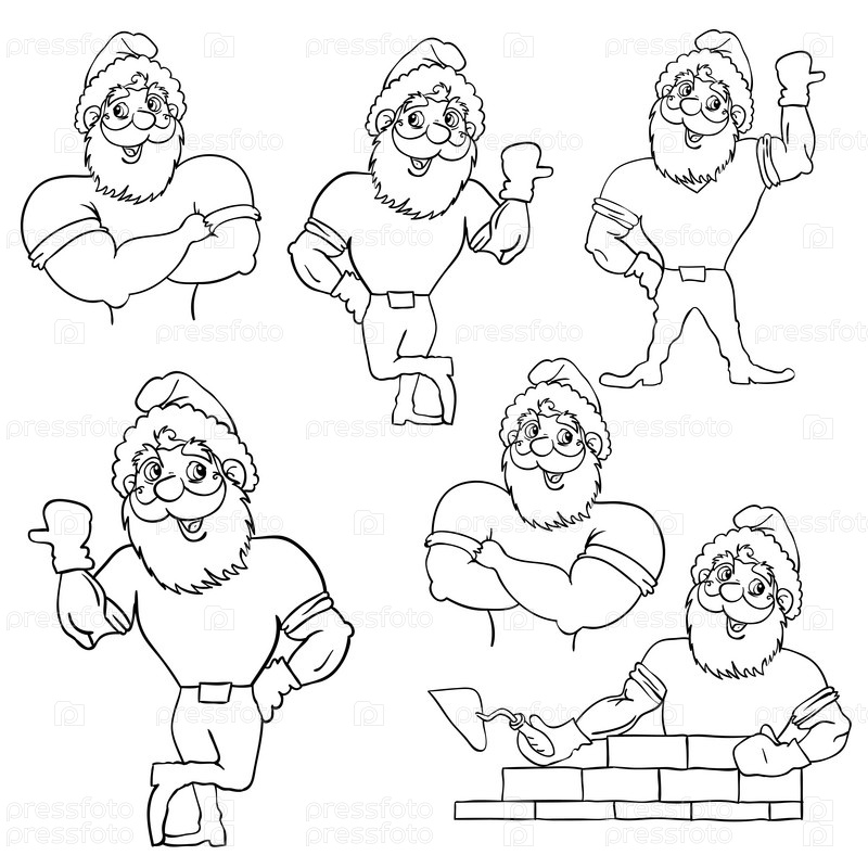 Набор изображений Санта-Клауса в разных позах на белом фоне