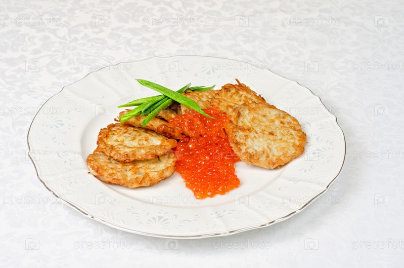 Блины с красной икрой и зеленым луком
