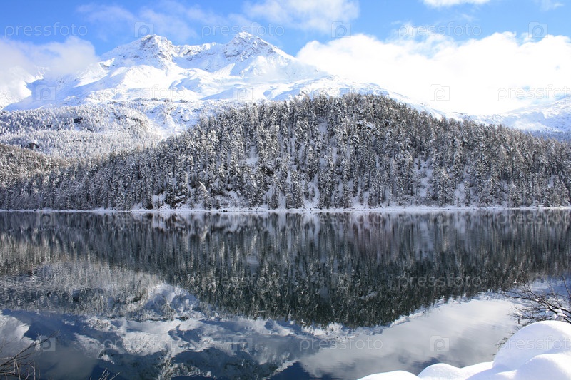 Зимний лес на берегу озера