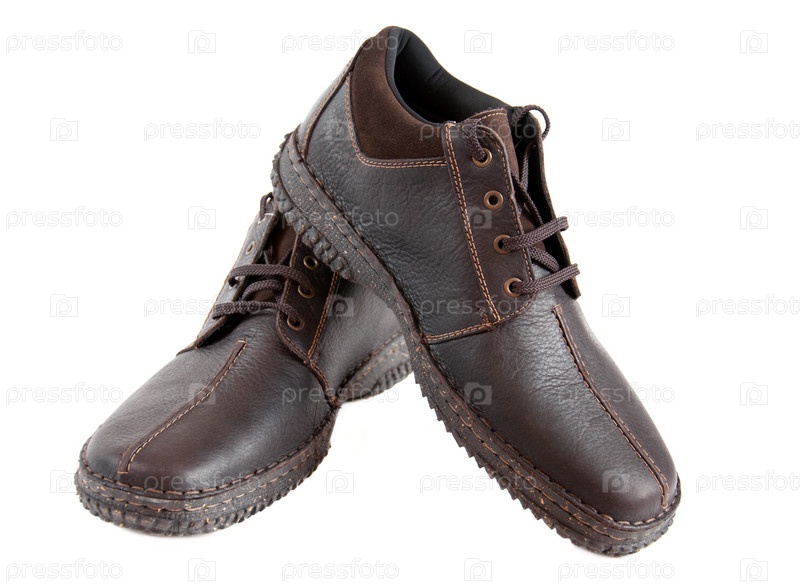 Пара коричневых мужских ботинок на белом фоне