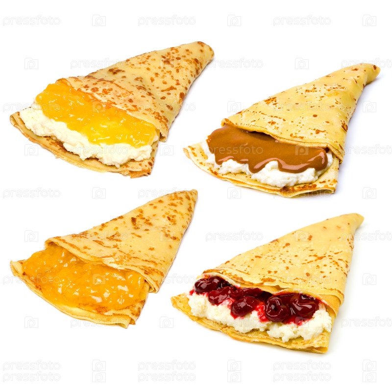 Блины с начинкой на белом фоне