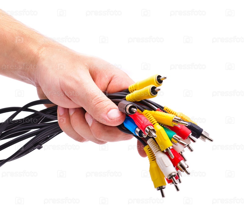 Пучок кабелей с разъемами в руке