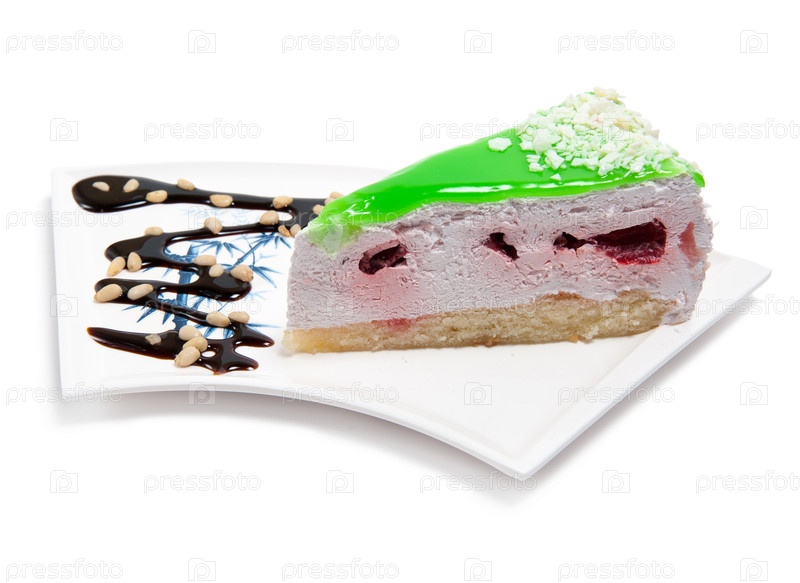 Кусок йогуртового торта на тарелке