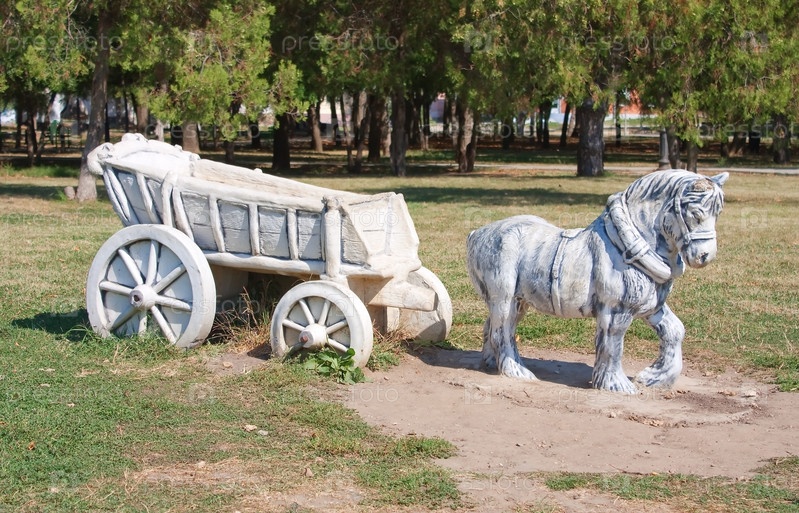 Статуя лошади с телегой в Темрюкском, Россия