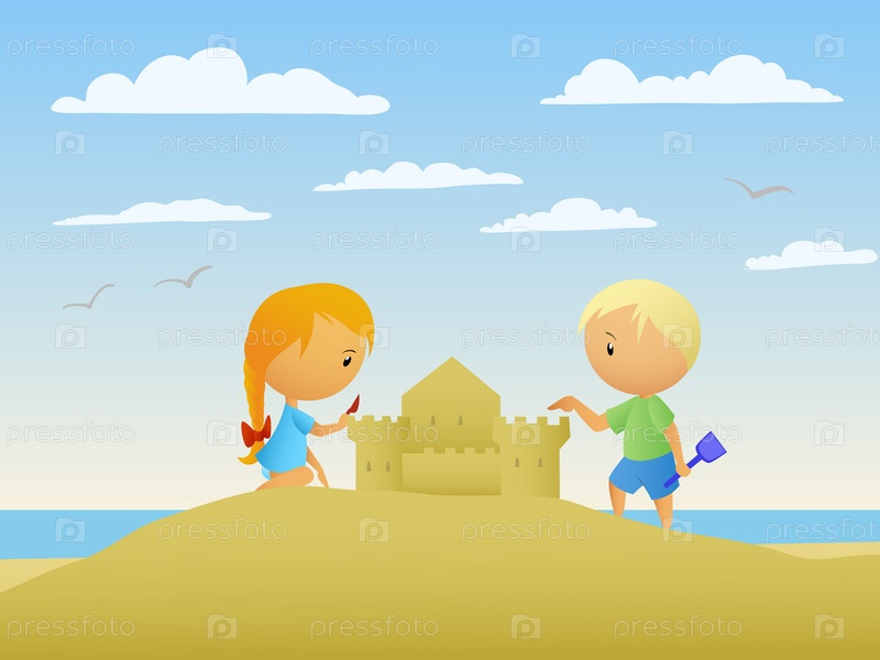 Дети, строящие замок из песка
