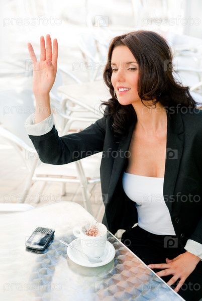 Деловая женщина пьет кофе в кафе