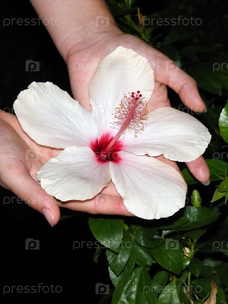 Цветок гибискуса на руках