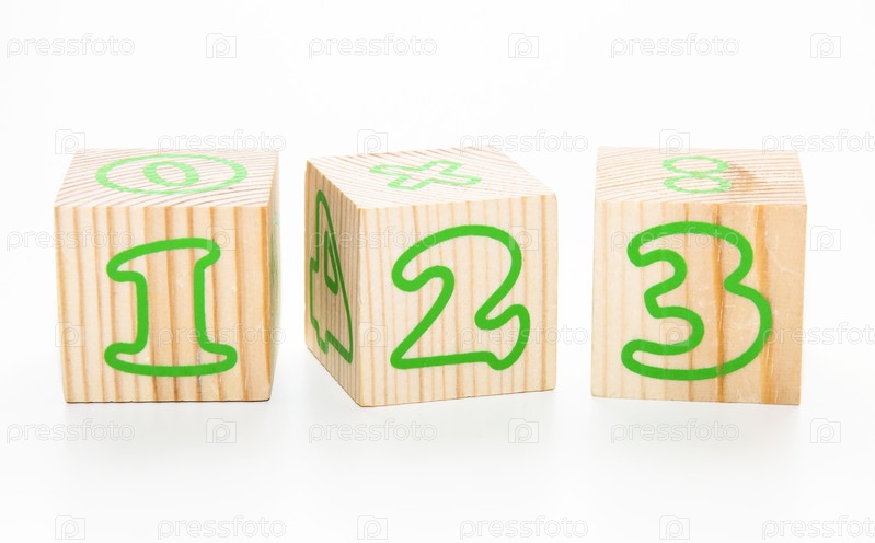 Деревянные кубики с числами и математическими действиями на боках