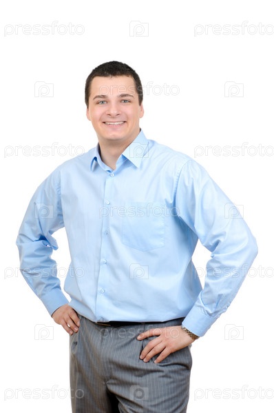 Бизнесмен, уверенно стоящий в изоляции на белом фоне