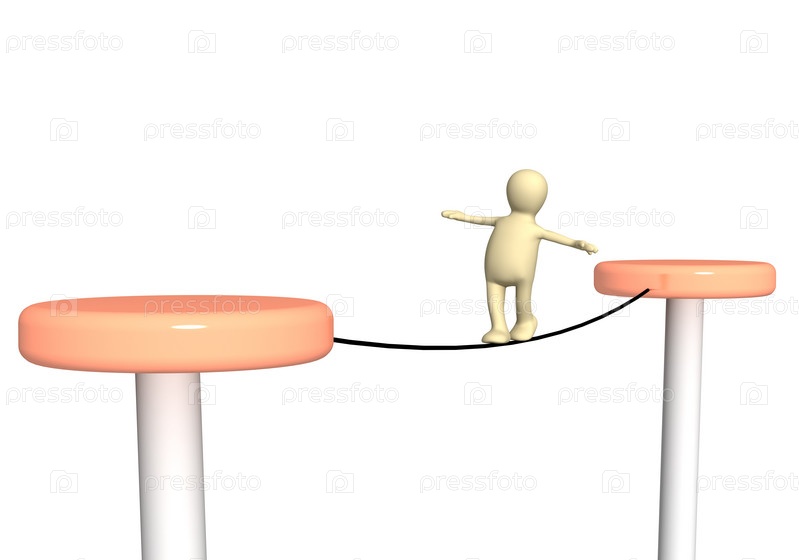 Стилизованный 3d человечек, идущий по канату