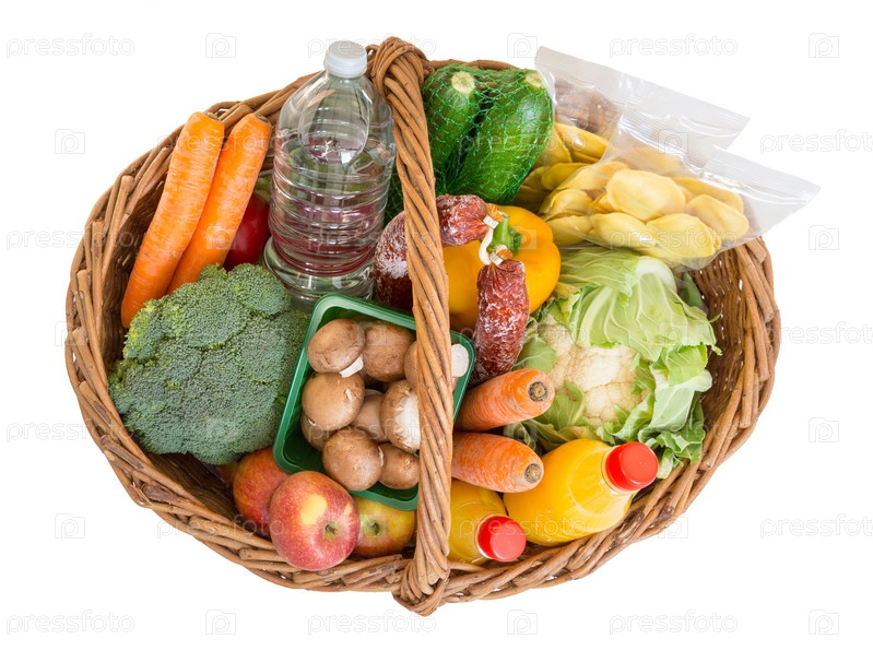Корзина с продукты фрукты и овощи