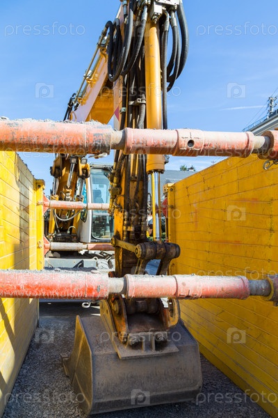 Экскаватор на стоянке на строительной площадке
