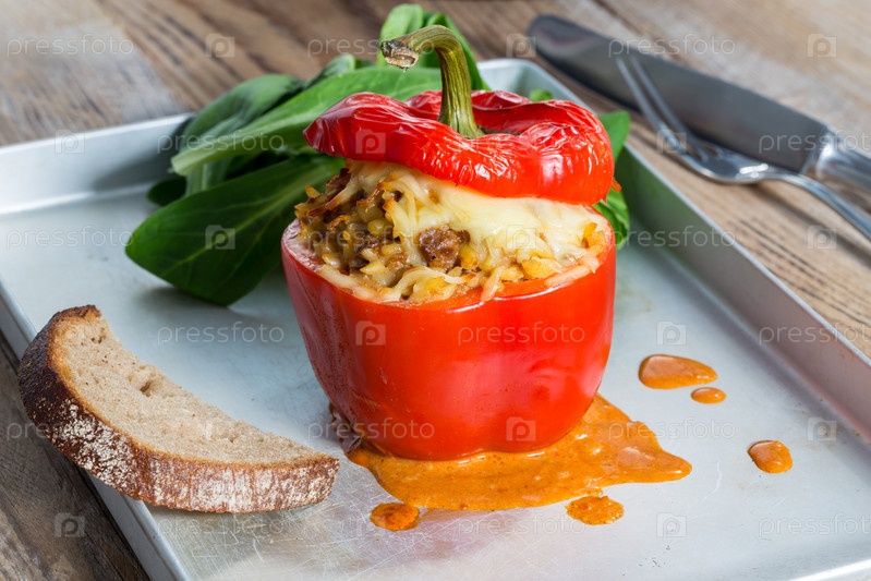 Фаршированные перцы с мясным соусом и сыром запеченный
