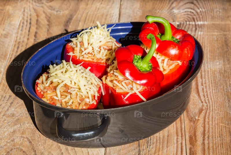 Фаршированные перцы с мясным соусом и сыром запеченный