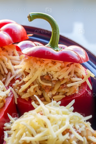 Фаршированные перцы с мясным соусом и сыром запеченный