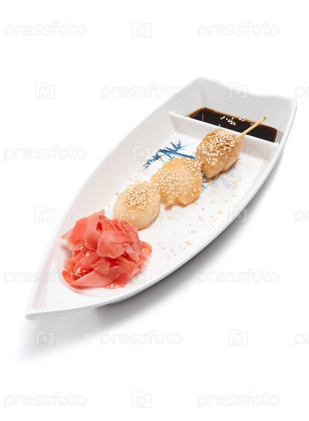 Японский шашлык на блюде в форме лодки
