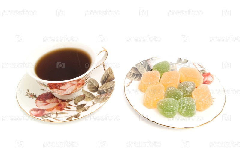 Кружка чая и Фруктовые конфеты