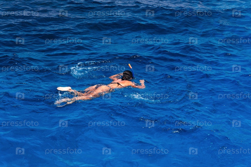 Молодая женщина в купальнике сноркелинг