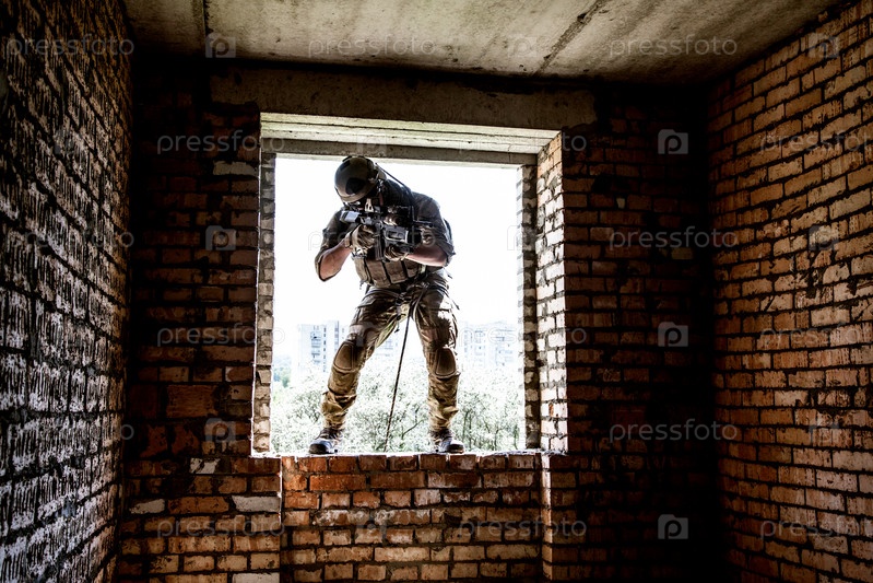 Спуск по веревкам с оружием