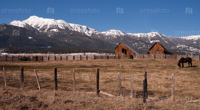 Старый сарай на фоне гор