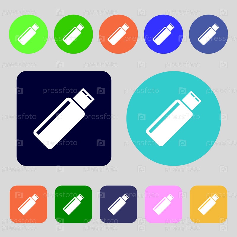 Иконка ввода USB. символ палочки флэш-накопителя. 12 цветовых кнопок. плоский дизайн. вектор
