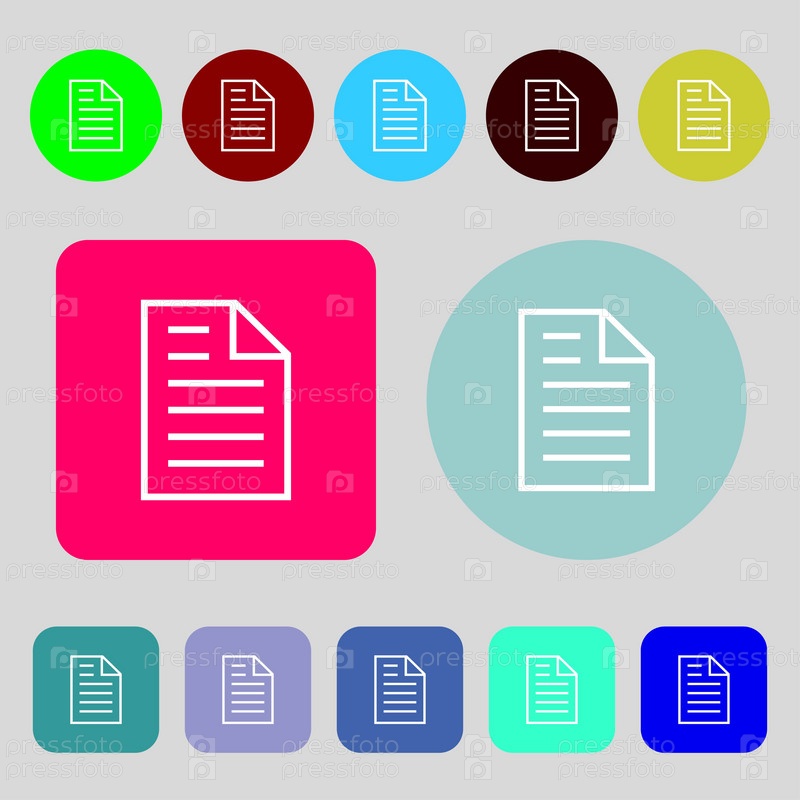 Значок текстового файла знак. Файл документа. 12 цветных кнопок. Плоский дизайн. Вектор
