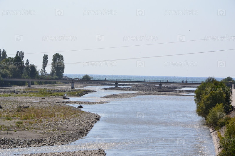 Горная река, впадающая в море