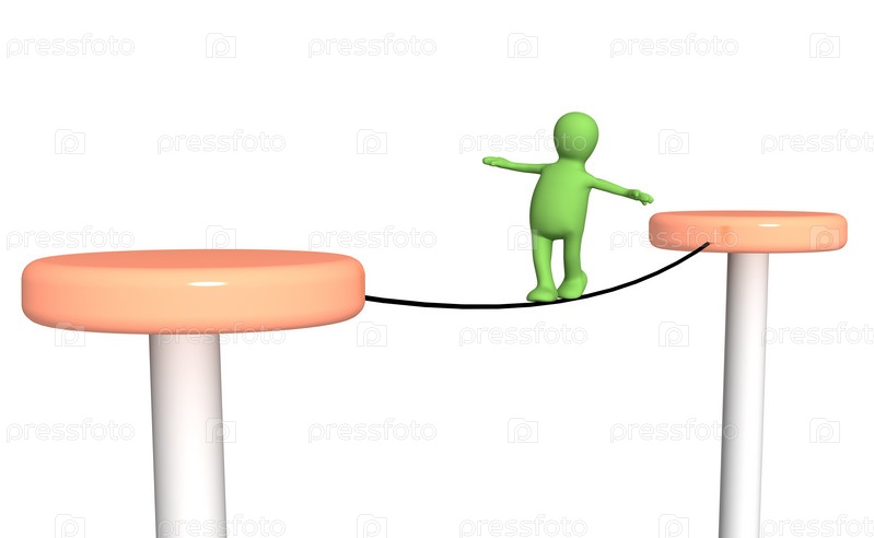 Стилизованный 3d человечек, идущий по канату
