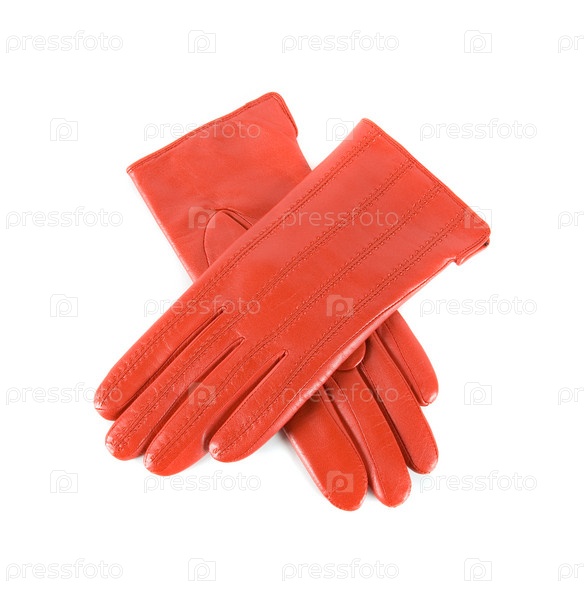 Красные женские кожаные перчатки, изолированы на белом
