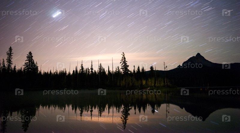 Красивое звездное небо над горным озером